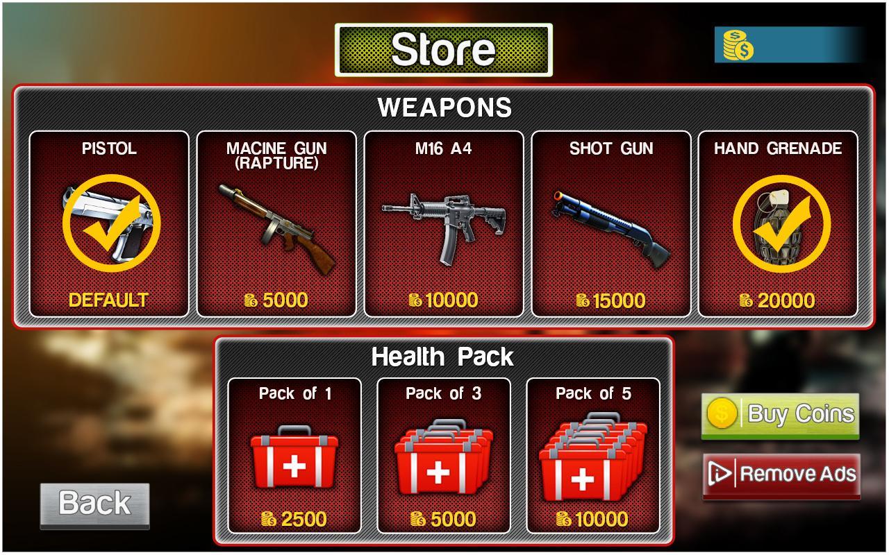 • Collect different type's ammo during action war.